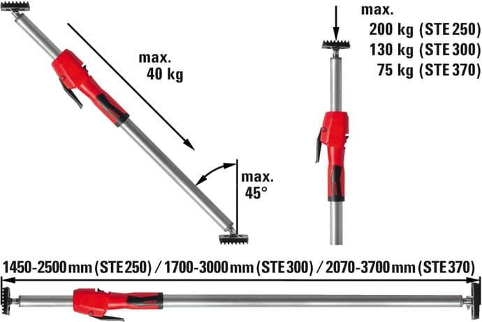 - Bärförmåga maximalt 350 kg med teleskopstången helt inskjuten