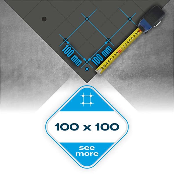 Skivan har också tydlgt rutmönster cc 100mm. Detta är till för underlätta montering av verktyg på rätt plats.